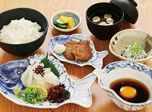 ◎くわ焼き ◎小鉢 ◎茶わん蒸し ◎漬物 ◎御飯 ◎みそ汁 ◎フルーツ